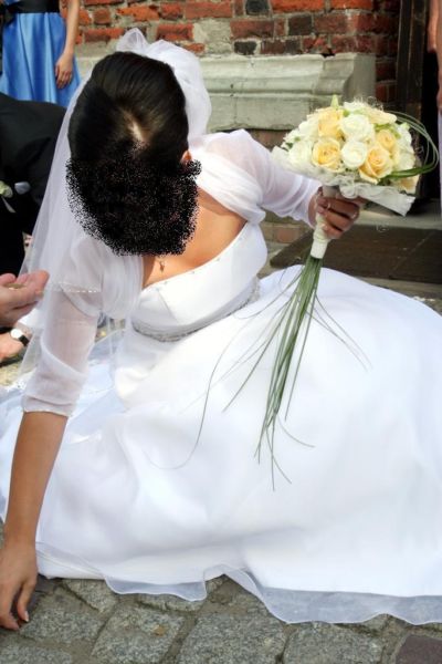 Suknia nie zniszczona. Po czyszczeniu chemicznym. Zakupiona w salonie Karolina na Długiej w Krakowie w 2009r. Gratis bolerko i oryginalny pokrowiec. Więcej zdjęć na maila. tel. 660514718